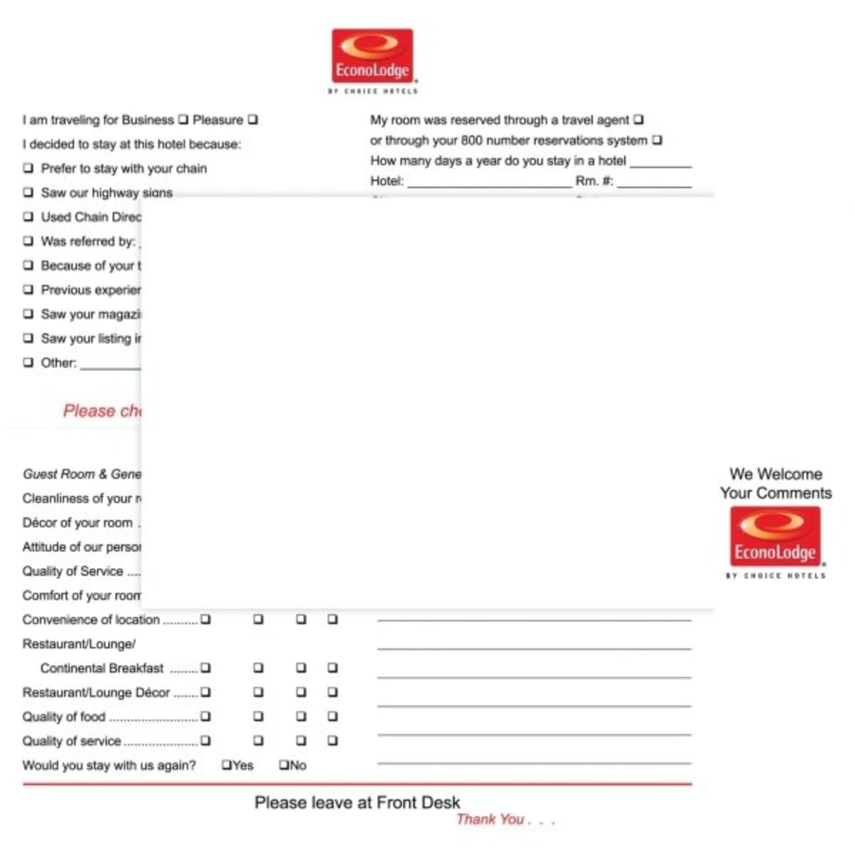 Econo Lodge Comment Card Case Of 500 Hd Supply